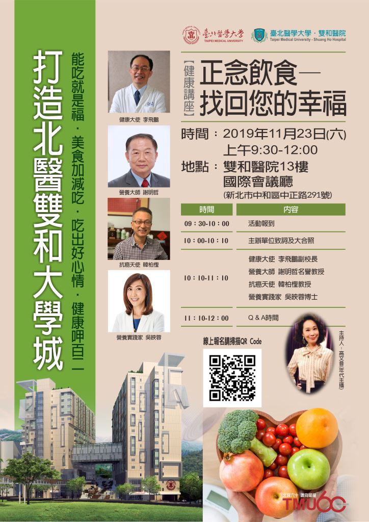 為讓大家參與打造北醫雙和大學城,北醫將舉辦一系列教育健康人文活動,活動免費報名? 歡迎大家踴躍參加,名額有限,動作要快喔!