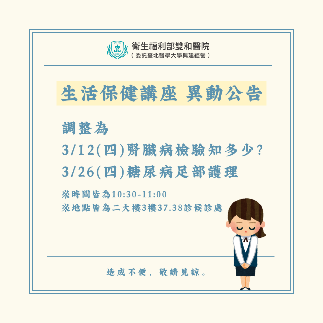 【重要公告】115年3月生活保健講座異動 公告